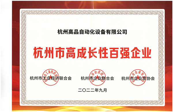 會(huì)上,我司榮獲“2022杭州市高成長(zhǎng)性百?gòu)?qiáng)企業(yè)”榮譽(yù)稱號(hào)!