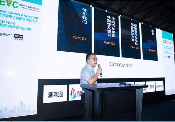 資深主任工程師嚴其斌代表高品發(fā)表“從傳統(tǒng)汽車零部件到新能源汽車電機電控——智能裝配和測試技術(shù)分享”的主題演講。